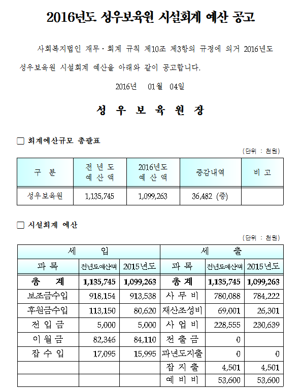 19-03-28 11:24 2016년 시설회계 예산 공고 페이지 정보 작성자 성우보육원 댓글 0건 조회 6,758회 본문 2016년 시설회계 예산 공고 목록 댓글목록 댓글목록 등록된 댓글이 없습니다.