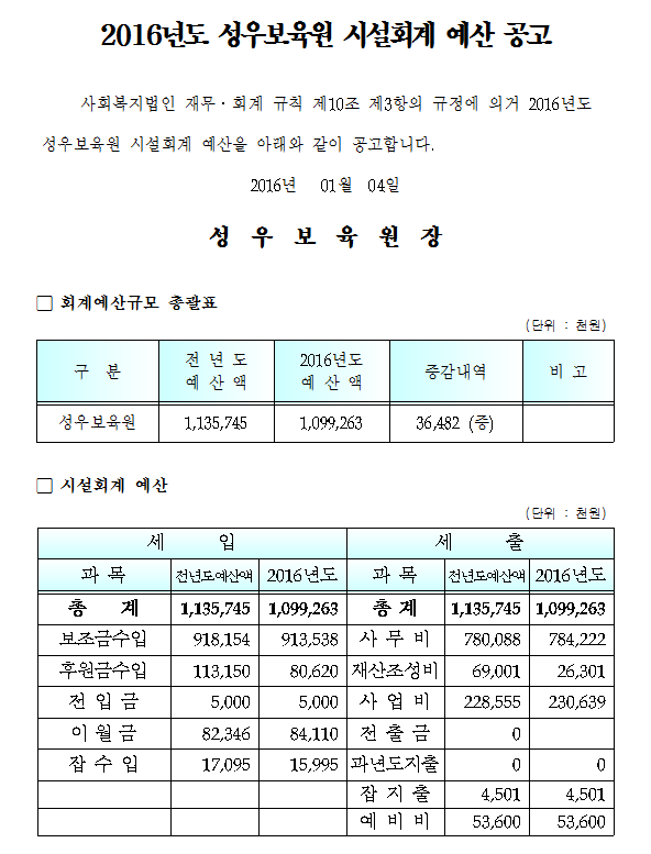 19-03-28 11:26 2016년 시설회계 예산공고(재공고) 페이지 정보 작성자 성우보육원 댓글 0건 조회 7,259회 본문 2016년 시설회계 예산공고(재공고) 목록 댓글목록 댓글목록 등록된 댓글이 없습니다.