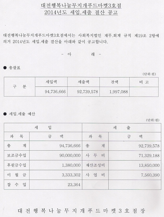 19-03-28 11:19 대전행복나눔무지개푸드마켓3호점 2014년도 세입.세출 결산공고 페이지 정보 작성자 성우보육원 댓글 0건 조회 6,759회 본문 대전행복나눔무지개푸드마켓3호점 2014년도 세입.세출 결산공고 목록 댓글목록 댓글목록 등록된 댓글이 없습니다.