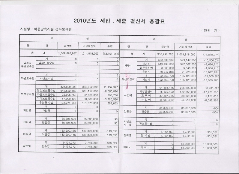 2010년도 세입세출 결산 총괄표 작성일 19-03-28 10:50 페이지 정보 작성자성우보육원 조회 7,364회 댓글 0건 본문 2010년 세입세출 결산 총괄표 댓글목록 댓글목록 등록된 댓글이 없습니다.