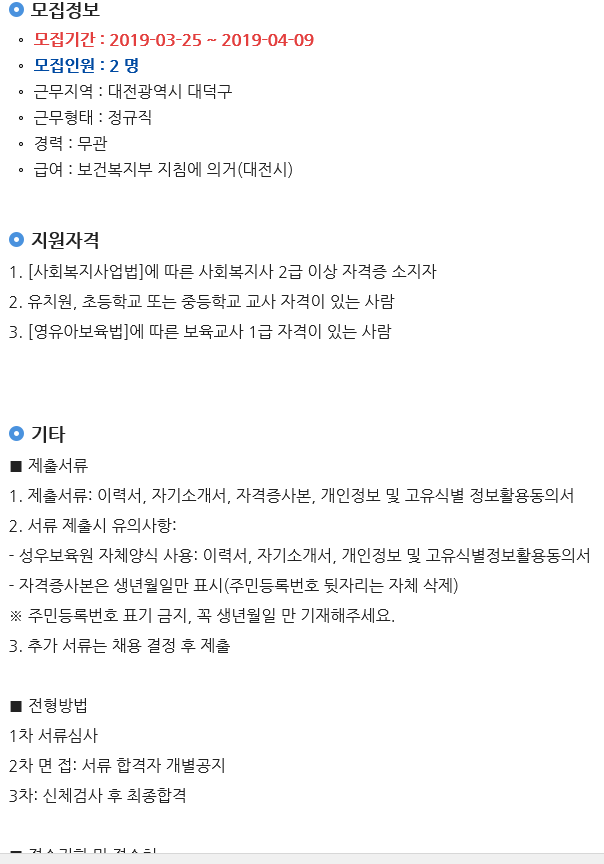 19-03-25 11:50 (공고) 생활지도원 모집 페이지 정보 작성자 성우보육원 댓글 0건 조회 7,902회 본문 생활지도원 모집 ※ 정확한 정보는 복지넷 공고 참고해주세요. 목록 댓글목록 댓글목록 등록된 댓글이 없습니다.