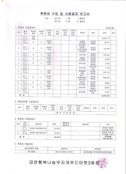 19-03-28 11:45 (공고)대전행복나눔무지개푸드마켓3호점 2017년도 후원금 수입 및 사용 결과보고 페이지 정보 작성자 성우보육원 댓글 0건 조회 7,295회 본문 (공고)대전행복나눔무지개푸드마켓3호점 2017년도 후원금 수입 및 사용 결과보고 목록 댓글목록 댓글목록 등록된 댓글이 없습니다.