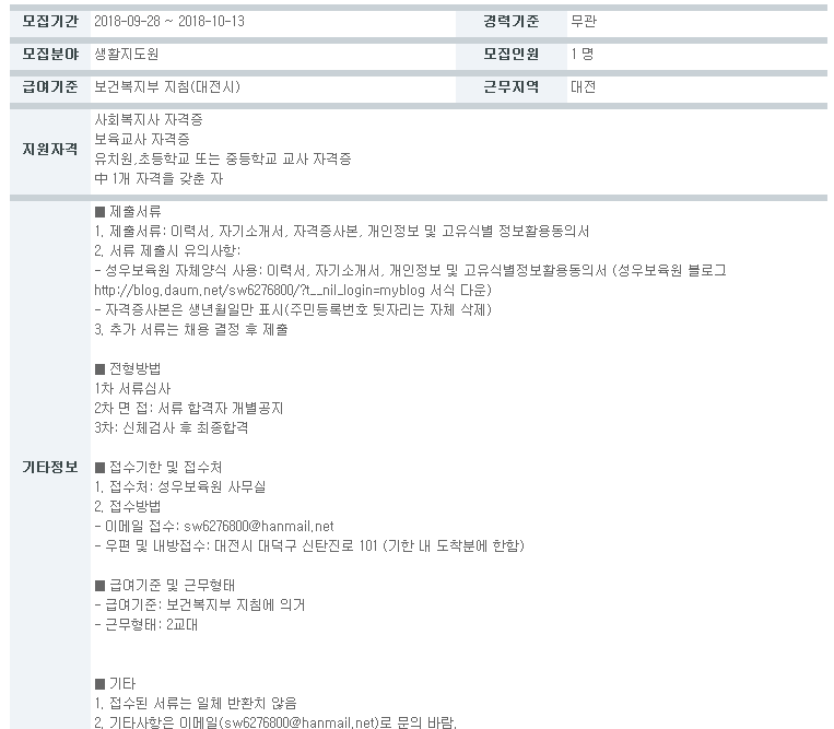(구인) 생활지도원 모집 > 공지사항