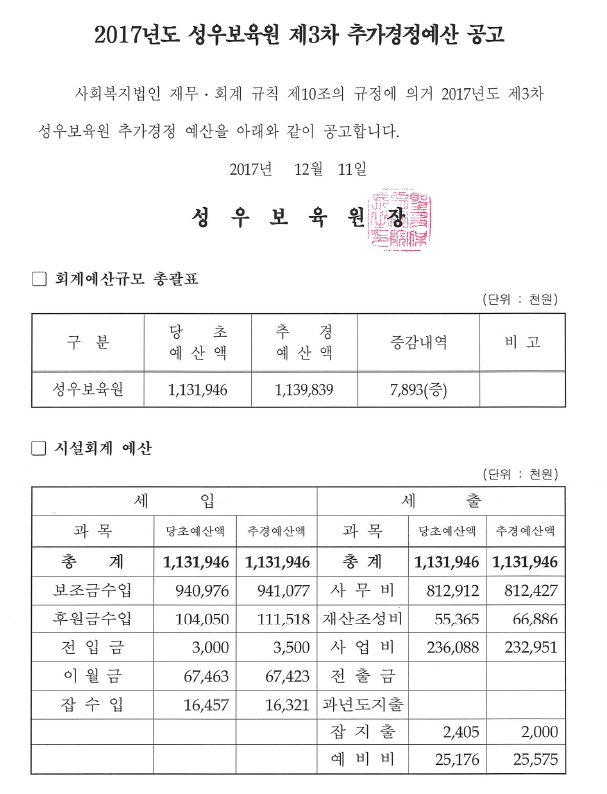 19-03-28 11:41 (공고)2017년도 제3차 추가경정 예산 페이지 정보 작성자 성우보육원 댓글 0건 조회 7,861회 본문 (공고)2017년도 제3차 추가경정 예산 목록 댓글목록 댓글목록 등록된 댓글이 없습니다.
