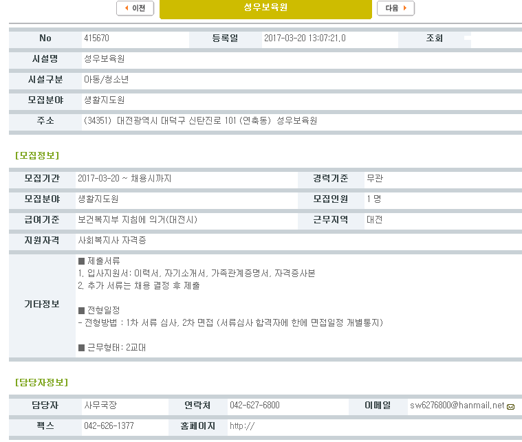 19-03-28 11:37 (채용공고)생활지도원 모집 페이지 정보 작성자 성우보육원 댓글 0건 조회 7,669회 본문 생활지도원 모집 목록 댓글목록 댓글목록 등록된 댓글이 없습니다.