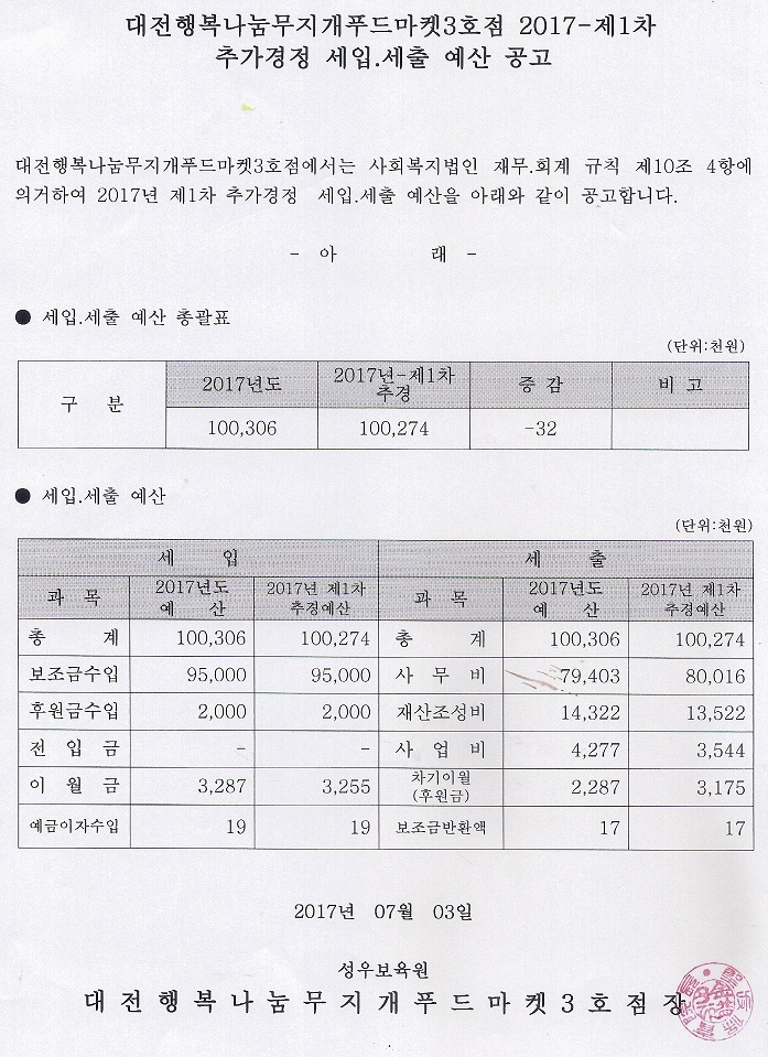 19-03-28 11:39 대전행복나눔무지개푸드마켓3호점 2017-1차 추가경정 세입.세출 예산서 페이지 정보 작성자 성우보육원 댓글 0건 조회 7,282회 본문 대전행복나눔무지개푸드마켓3호점 2017-1차 추가경정 세입.세출 예산서 목록 댓글목록 댓글목록 등록된 댓글이 없습니다.