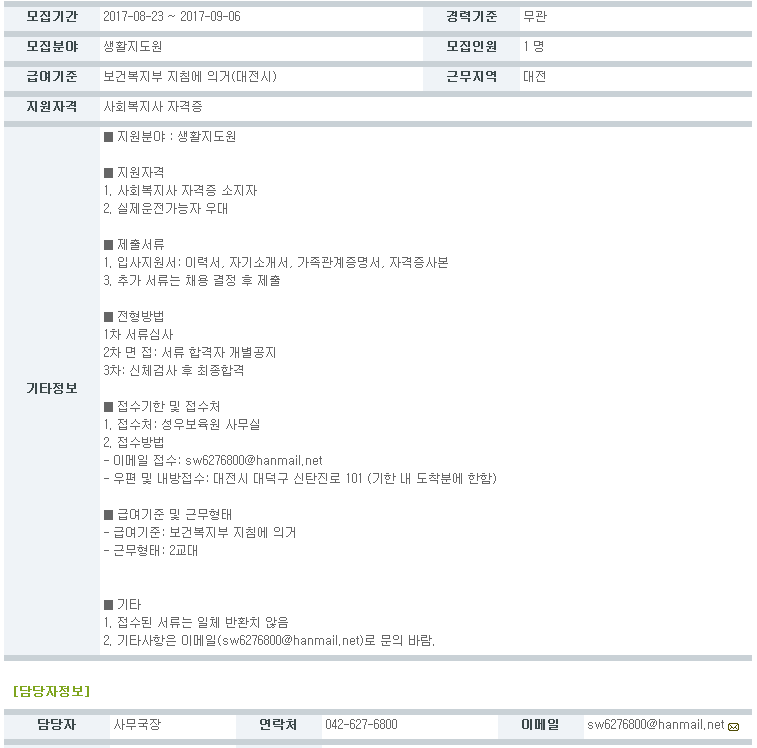 (공고)생활지도원 모집 > 공지사항