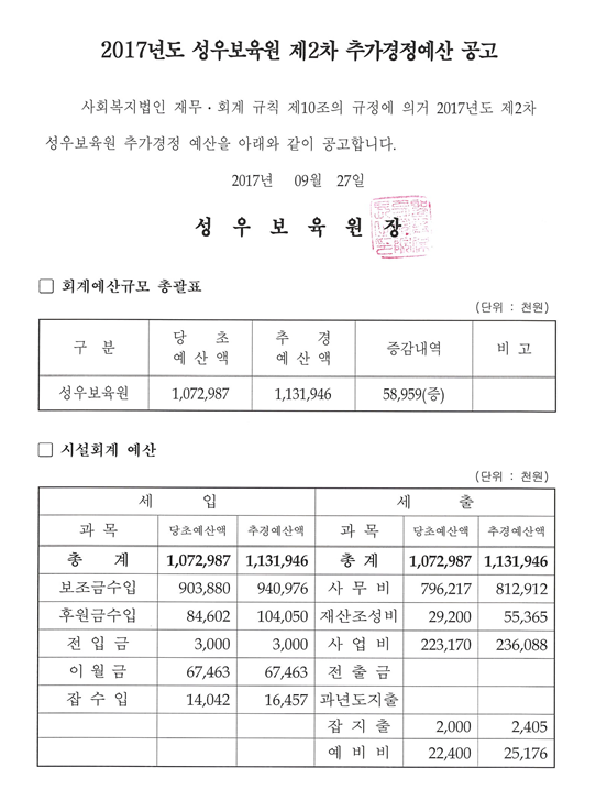 19-03-28 11:40 (공고)2017년도 제2차 추가경정 예산 페이지 정보 작성자 성우보육원 댓글 0건 조회 7,516회 본문 2017년도 제2차 추가경정 예산 목록 댓글목록 댓글목록 등록된 댓글이 없습니다.