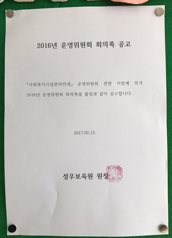 19-03-28 11:35 2016년 운영위원회 회의록 공고 페이지 정보 작성자 성우보육원 댓글 0건 조회 7,524회 본문 본 시설에서는 「사회복지사업 관리안내」지침에 의거, 2016년도 시설운영위원회 회의록을 원내 게시판에 다음과 같이 공지하였음을 알려드립니다. 목록 댓글목록 댓글목록 등록된 댓글이 없습니다.