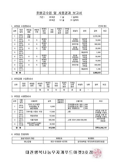 19-03-28 11:36 대전행복나눔무지개푸드마켓3호점 2016년 후원금 수입 및 사용결과 공고 페이지 정보 작성자 성우보육원 댓글 0건 조회 7,635회 본문 대전행복나눔무지개푸드마켓3호점 2016년 후원금 수입 및 사용결과 공고 목록 댓글목록 댓글목록 등록된 댓글이 없습니다.