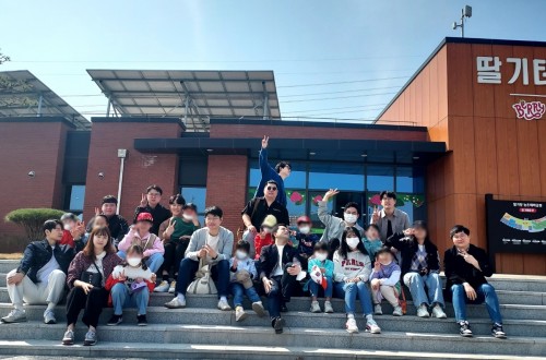 성우 프렌즈 봉사자분들과 초등학생 아동들이 함께논산에 위치한 딸기 향촌 공원, 탑정호 수…