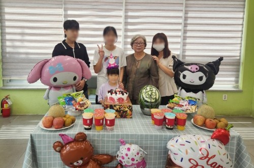 8월의 생일을 맞이한 아동을 위해 다 같이 생일파티 진…