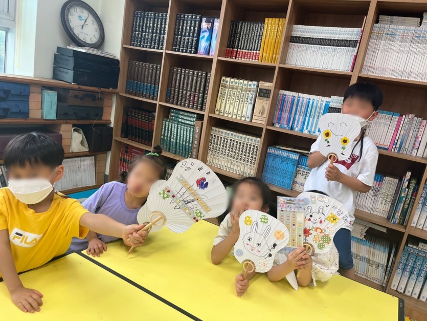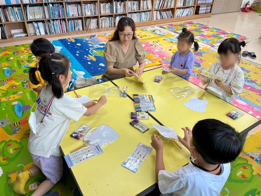 오늘은 더위가 찾아온 계절에 맞춰 <한들한들 바람친구 부채> 책을 읽어주셨습니다.