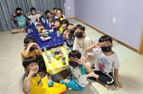 추석을 맞이하여 원내 미취학 아동들이 도서실에 모두 모여 명절 그림 색칠하기 활동을 진행…