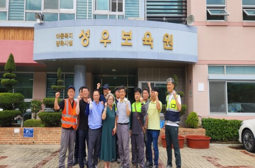 아세아시멘트 봉사자 열한분 내방 하셔서 노후 전등 교체, 관리동 정리 및 청소 진행해주셨…