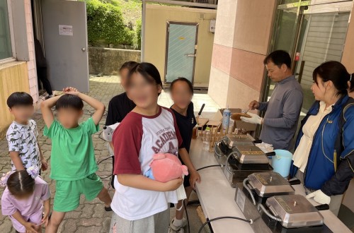 ”해님아 간식을 부탁해“ 봉사자분들이 방문하셔서, 와플/뻥튀기 등 간식…