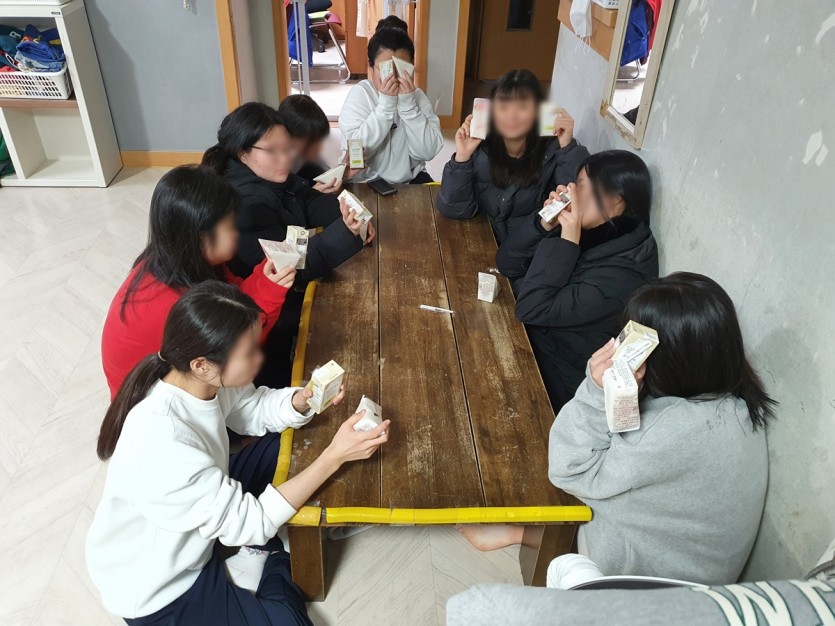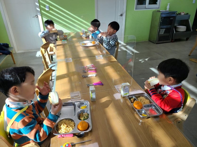 아동들 후원자님께 감사한 마음으로 달콤한 음식을 맛있게 먹으며 2021년의 마지막 즐거운 점심시간을 가졌습니다.