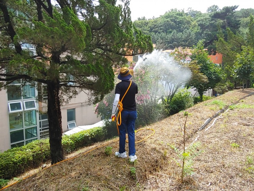 원내 및 주변 나무 등을 꼼꼼히 소독하여 아동들이 더운 여름철에 많이 발생하는 해충으로부터 안전하게 생활할 수 있도록 해주셨답니다.