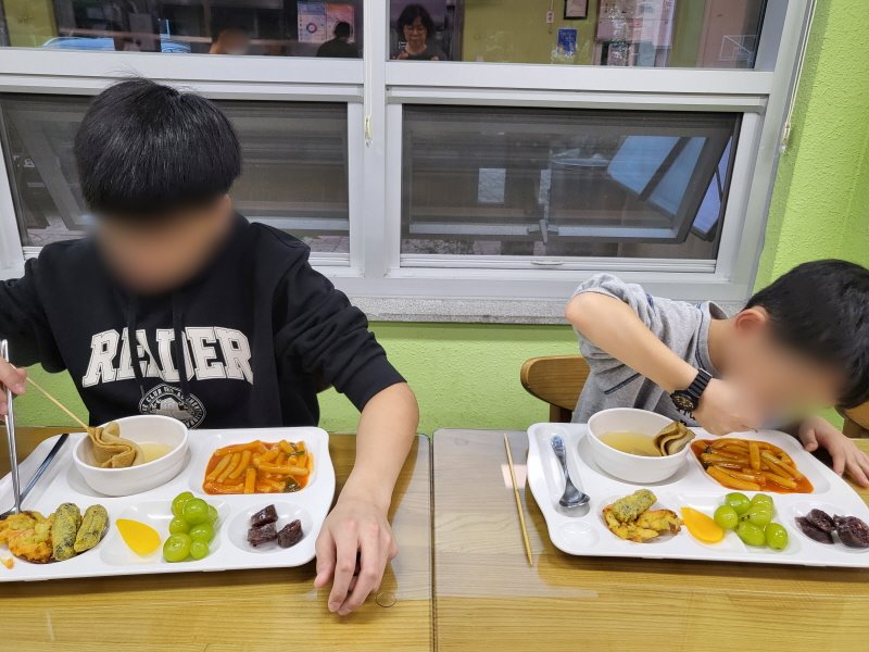 아이들이 입맛에 너무나 딱 맞는 떡볶이를 먹으면서