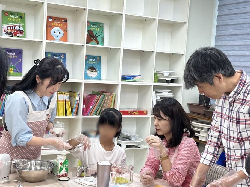 함께 케이크를 만드는 과정에서 웃음이 끊이지 않는