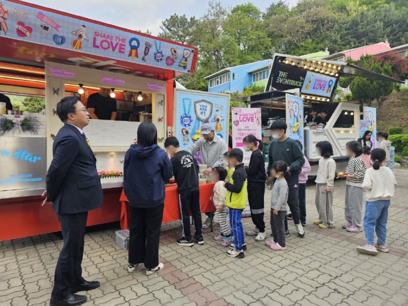 푸드트럭 2대가 들어오며 아이들을 위해 맛있는 음식을 준비해주셨는데