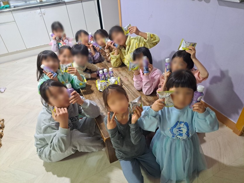 후원자님께서 후원해주신 든든한 간식을 먹으며 우리 아이들은 고단하고 피곤했던 오늘의 시간들을 위로 받고